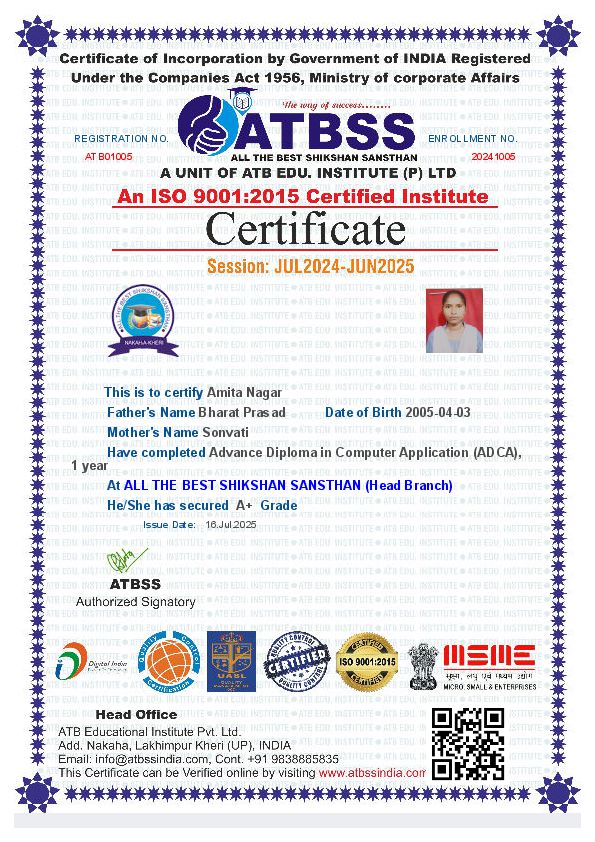 Advance Diploma in Computer Application (ADCA)