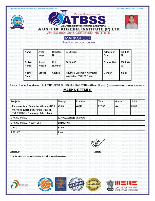 Certificate& marksheet
