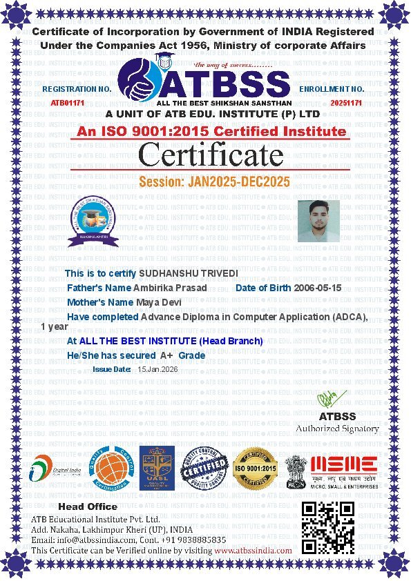 Advance Diploma in Computer Application (ADCA)