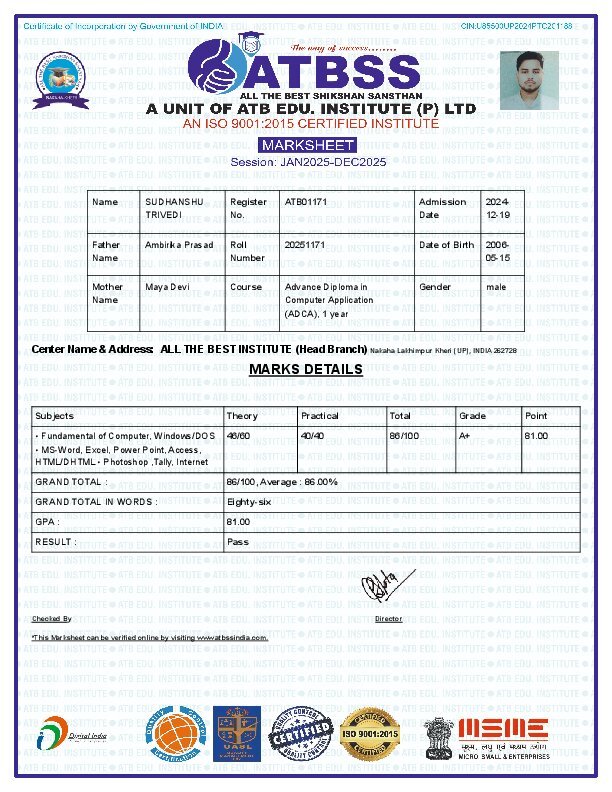 Certificate& marksheet