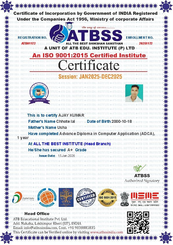 Advance Diploma in Computer Application (ADCA)