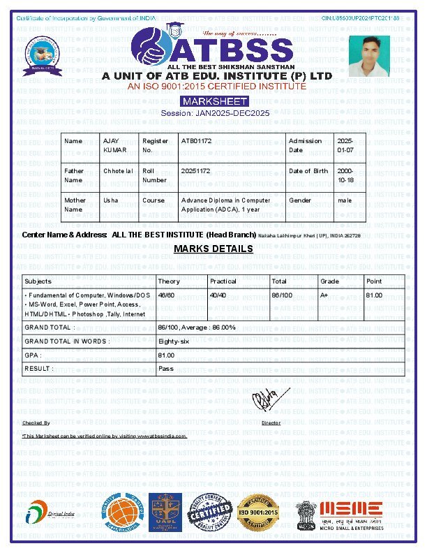 Certificate& marksheet