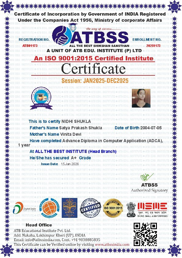 Advance Diploma in Computer Application (ADCA)