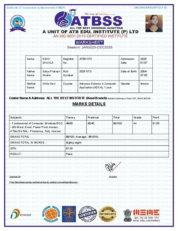 -: Certificate& marksheet :-