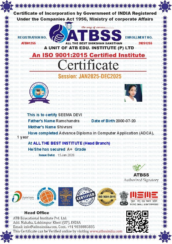 Advance Diploma in Computer Application (ADCA)