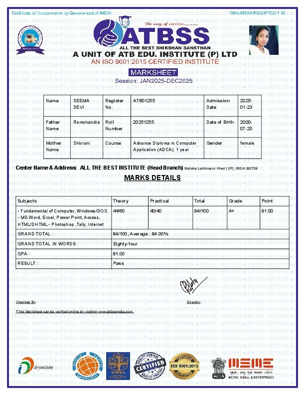 -: Certificate& marksheet :-