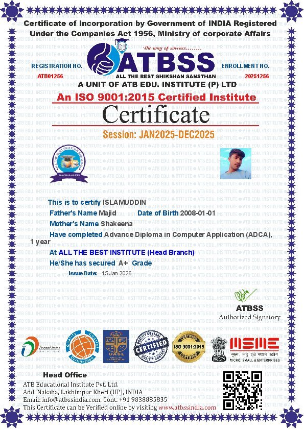 Advance Diploma in Computer Application (ADCA)