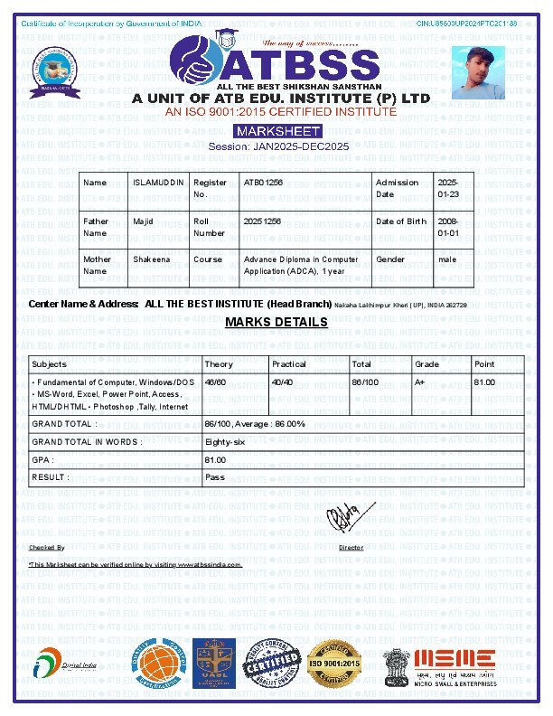 Certificate& marksheet